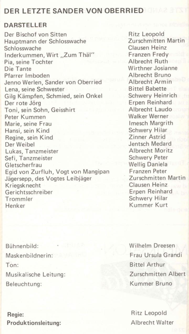 Das Stück wurde 1974 unter der Regie von Leopold Ritz in Mörel aufgeführt.