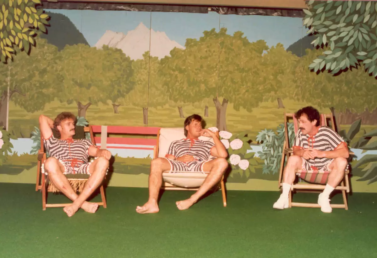 Der reiche Charly Drenhout, der seine Familie nicht kennt, hat sich mit seinen Freunden Bode und Udo auf sein Gut zurückgezogen, um dort für ein sportliches Ereignis zu trainieren. Den Klubstatuten nach dürfen sie während dieser Zeit keine Frauen sehen, geschweige denn an sie denken.