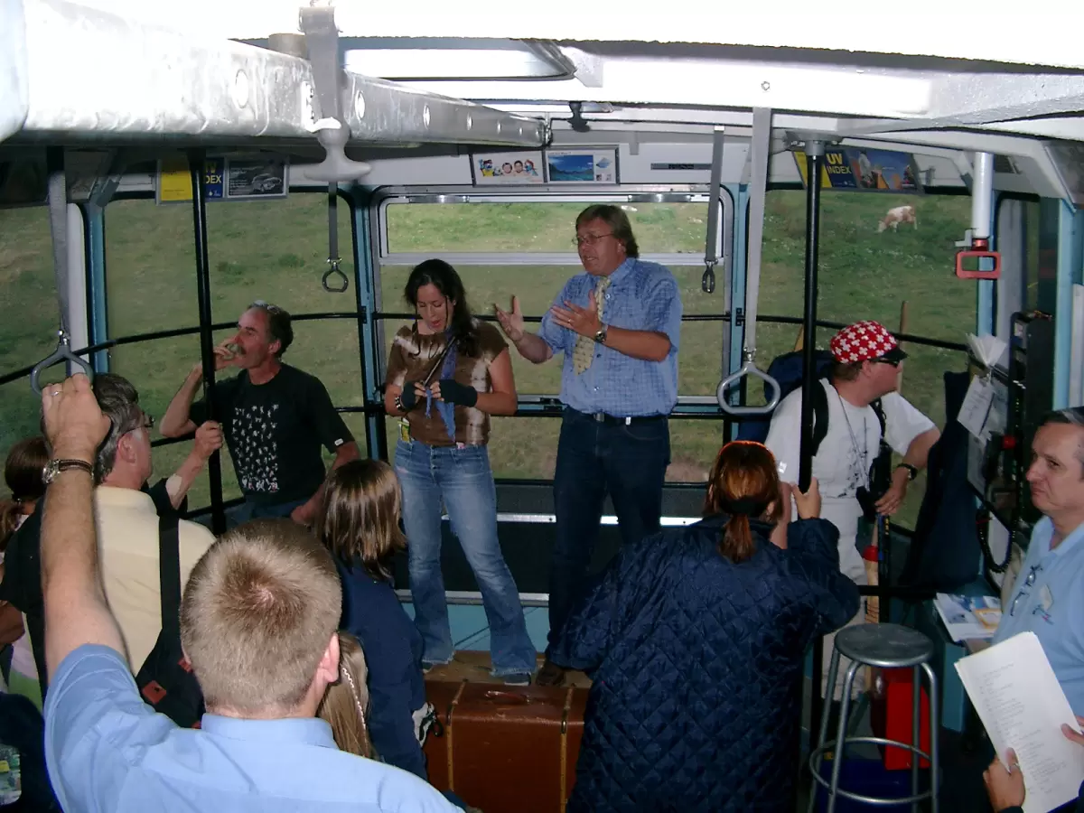 Bühne Mörel in der Seilbahn Riederalp, 6. August 2005