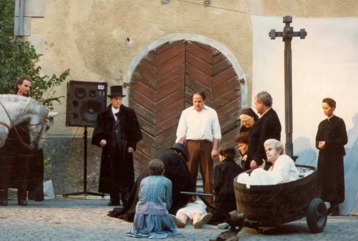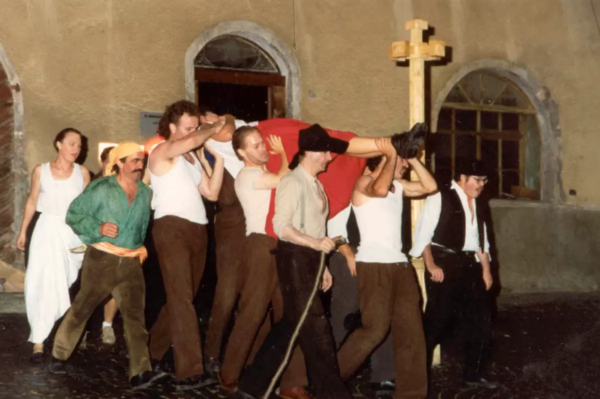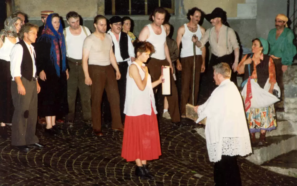Versucht er, sie den aufgebrachten Dorfbewohnern zu entreissen. Stattdessen bringt er sie nur noch mehr in Wut und wird noch schlimmer verhöhnt. Jetzt wird ihm plötzlich klar: Es sind nicht die schönen Wahrheiten des Evangeliums, die diese Menschen bewegen können, sondern nur die Worte, die Zaubermacht einiger Worte, deren genauer Sinn sie nicht kennen, deren Klang sie aber während ihres ganzen Lebens auf dem harten Weg des Verzichts und der Unterdrückung begleitet hat. Mit verzweifelter Wut schleudert ihnen der Sakristan die gleichen «Worte Gottes» noch einmal entgegen, die er vorher erfolglos gesprochen hat: «Qui sine peccato est vestrum, primus in illam lapidem mittat»
