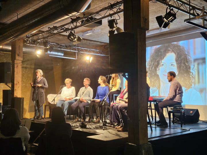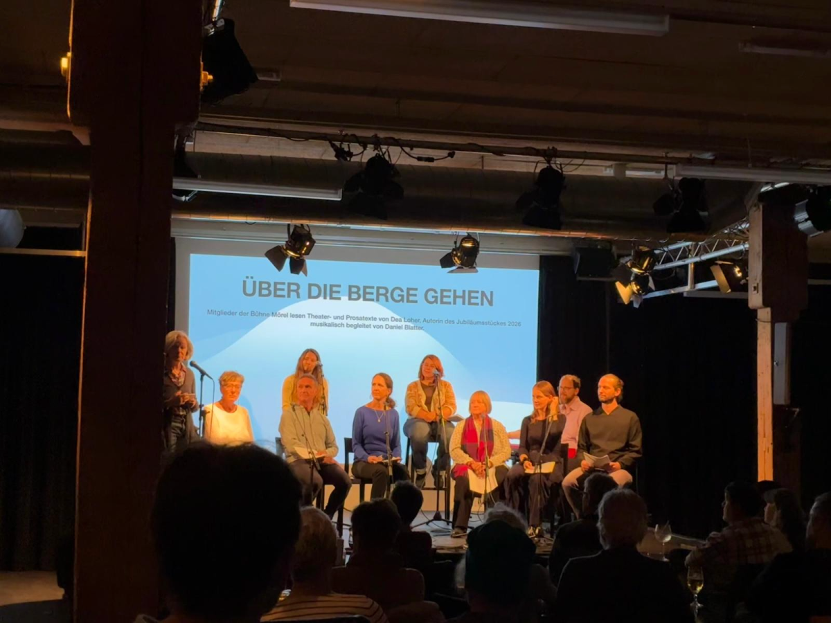 Mitglieder der Bühne Mörel lesen Theater- und Prosatexte von Dea Loher, der Autorin des Jubiläumsstückes 2026 «Frau Yamomoto ist noch da», musikalisch begleitet von Daniel Blatter.